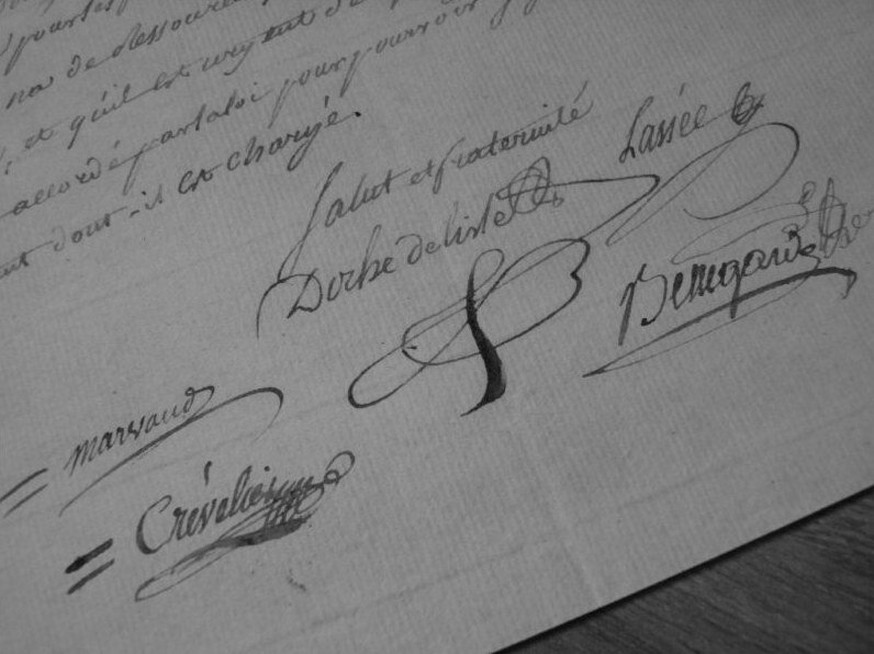 « Signé : P. Duchièvre prévost ; Tilhou, juge ; Jourdin de la Faye, pr ; Dumas Guygou, greffier » (14).